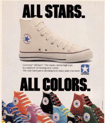 Dos tons primários, surgiram inúmeras estampas e motivos, com os anos 80 estreando camuflagem e tratamentos de animais e glitter, além de padrões xadrez, riscados e que brilham no escuro. Novos materiais, alturas e formatos surgiram, evoluindo o Chuck de um símbolo de subculturas específicas para um emblema personalizável para aqueles independentes o suficiente para não seguirem — e para uma lista de colaboradores em constante evolução.